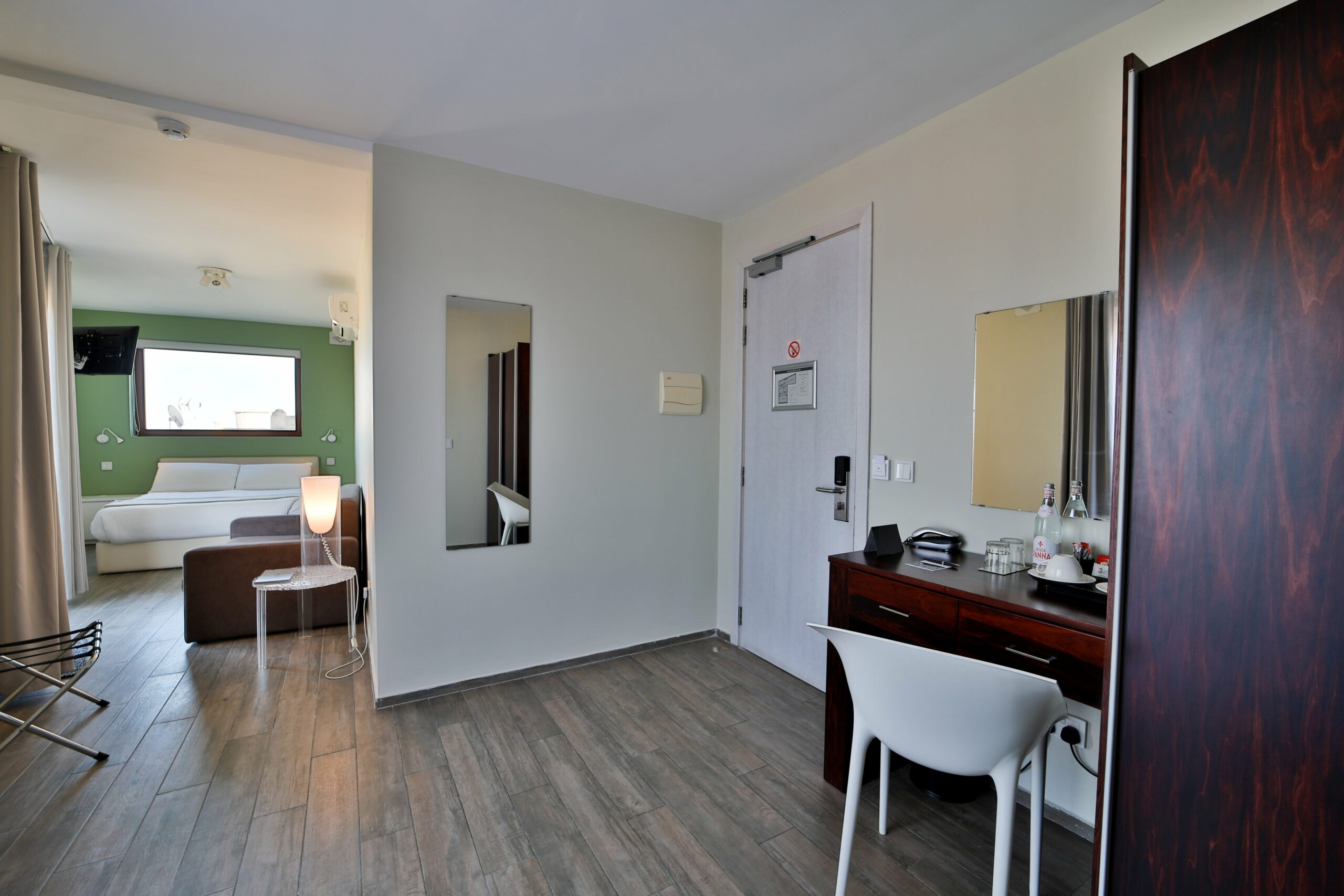 A double bedroom complemented with a sun deck terrace having 180 degrees country and distance sea views. The outdoor Hot Tub on the same terrace makes it the perfect spot for a remarkable stay throughout the whole year.